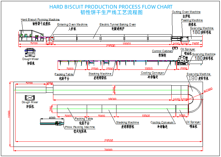 • Due to the high moisture content of the hard biscuit dough, the dehydration speed of the middle  part is slow during baking, and more water is placed during the preparation of the tough biscuit,   and the stirring time is long, the starch and protein absorb water sufficiently, the gluten is formed more, and the dough is more elastic. Therefore, low temperature baking , It can be baked for about 6 minutes at 180-250 Deg C.